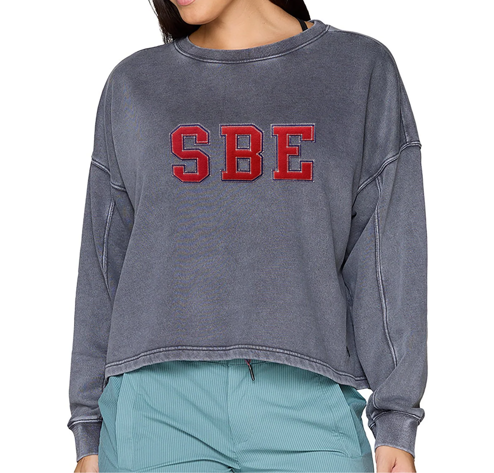 Cozy up in the SBE Felt Patch Charcoal Crewneck, an effortlessly stylish and ultra-soft oversized sweatshirt. Designed with a relaxed drop-shoulder fit, this charcoal grey crewneck offers all-day comfort with a touch of school spirit. Bold red patches with navy backing and white stitching spell out "SBE" across the front, celebrating St. Brendan Elementary in a classic, timeless style.